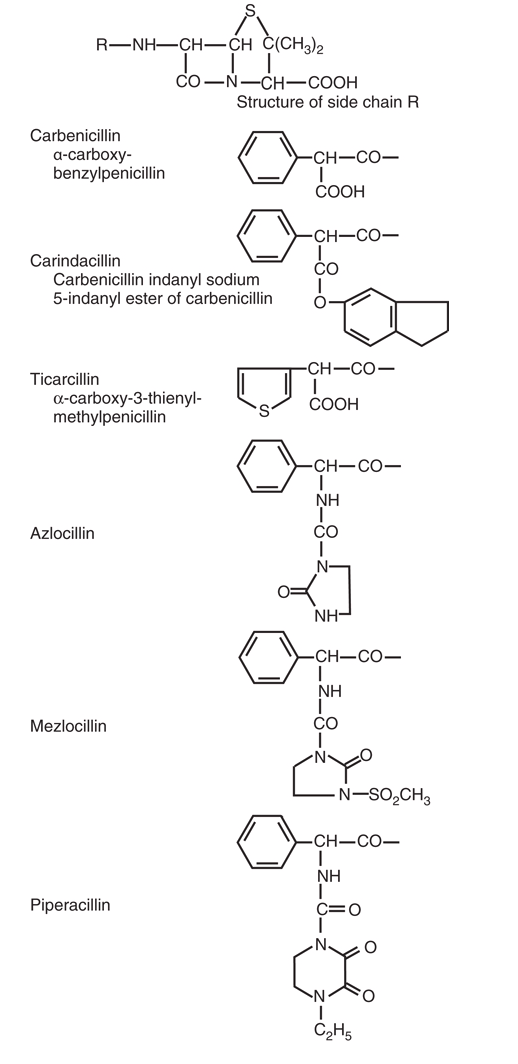 - Carboxypenicillins — carbenicillin, ticarcillin